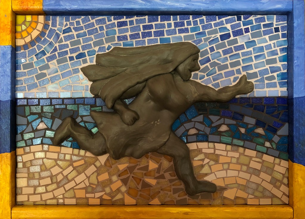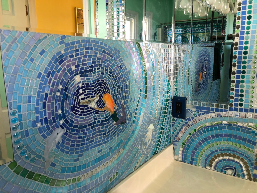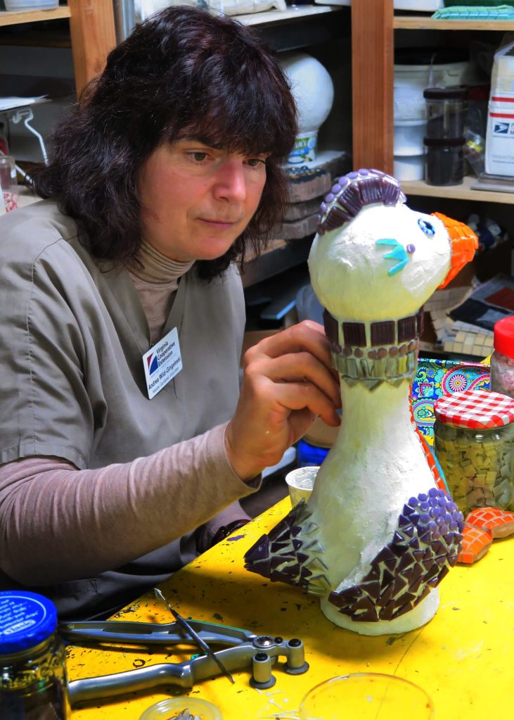 I like to think of myself as “Jack of all trades, Master of none,” as I dabble in gardening, painting and drawing, mosaics, fiber arts (weaving, crochet, knitting, felting, sewing), pottery, making marionettes, and other stuff I can get my hands on. I enjoy seeing other artist’s work in galleries and museums, trying to figure out how it was done.