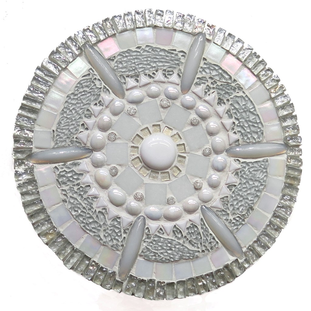 I like the tactile nature of working with tile as I did with fabric, yarn and glass. To me it seems a more direct expression than reached through a paintbrush or pencil. I sometimes have a vague idea of what I want something to look like but more often let the material dictate the result. I am more inspired by color, texture, and sparkle than depicting a realistic scene and I like being surprised at the outcome. Therefore, much of my work is abstract or semi-representational.